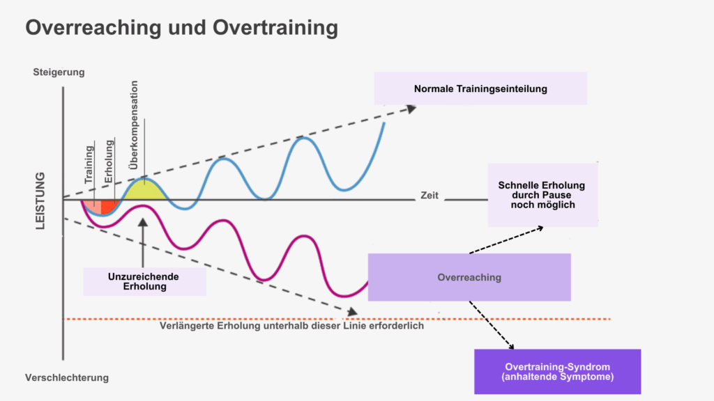 Abbildung: Overreaching und Overtraining. Eigene Darstellung nach The Open University: The fine line between overreaching und overtraining. Auf Open.edu